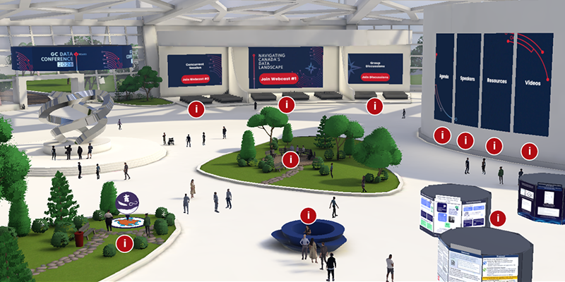 Explore this year's virtual conference kiosks to learn about key data‑related projects and initiatives from organizations across the Government of Canada. These kiosks have been developed by GC Data Community partners to showcase their current work and areas of innovation.